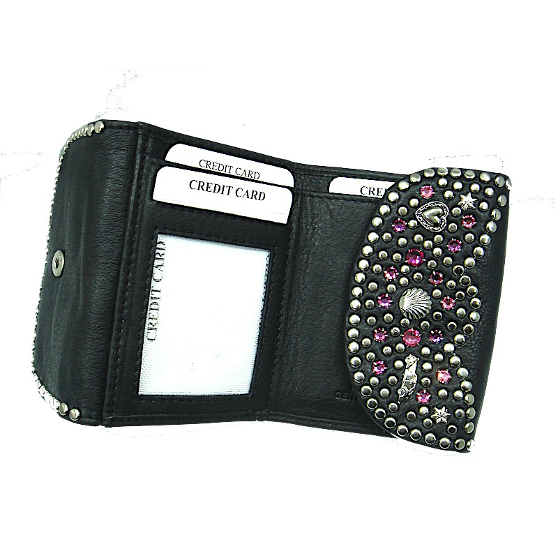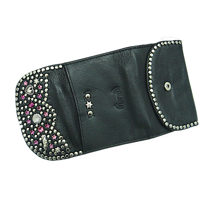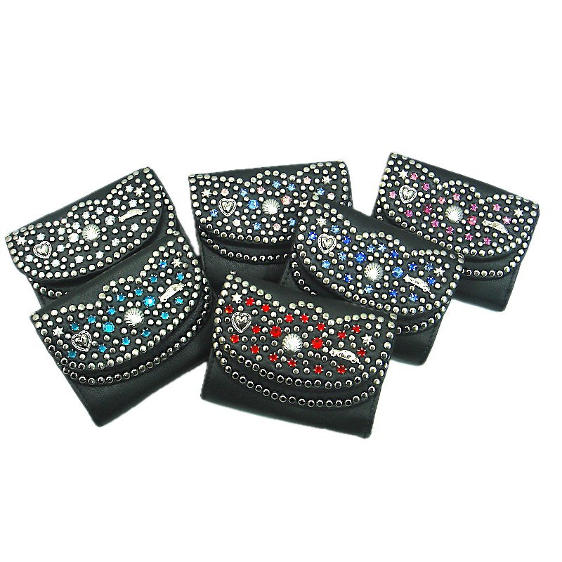 100% Echt Leder Swarovski Kristall Steine gefaßt 10 x 7,5 cm 1 Kleingeldfach 1 Geldscheinfach 4 Kartenfächer