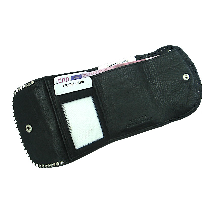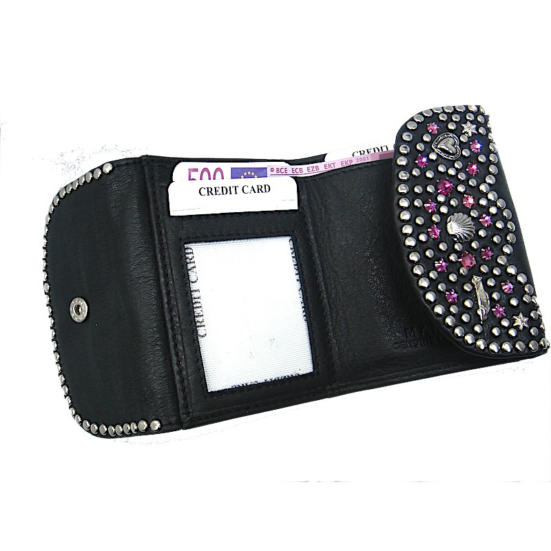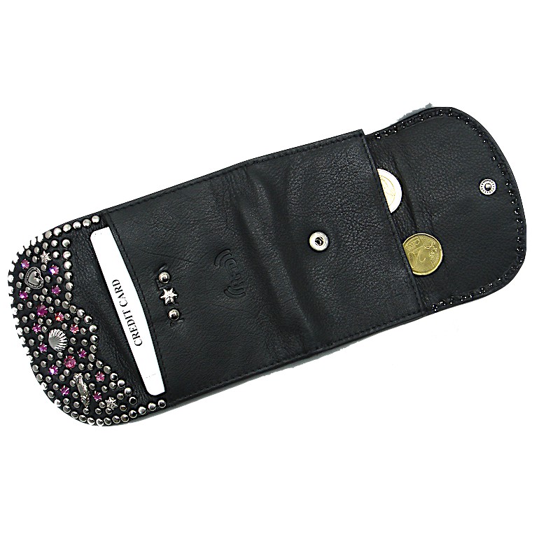 100% Echt Leder Swarovski Kristall Steine gefaßt .Wir bieten hier eine Minibörse mit viel Platz :breit 10 hoch 7,5 cm mit 2 Klappen 1 Kleingeldfach 1 Geldscheinfach passt für alle Scheingrößen 4 Kartenfächer