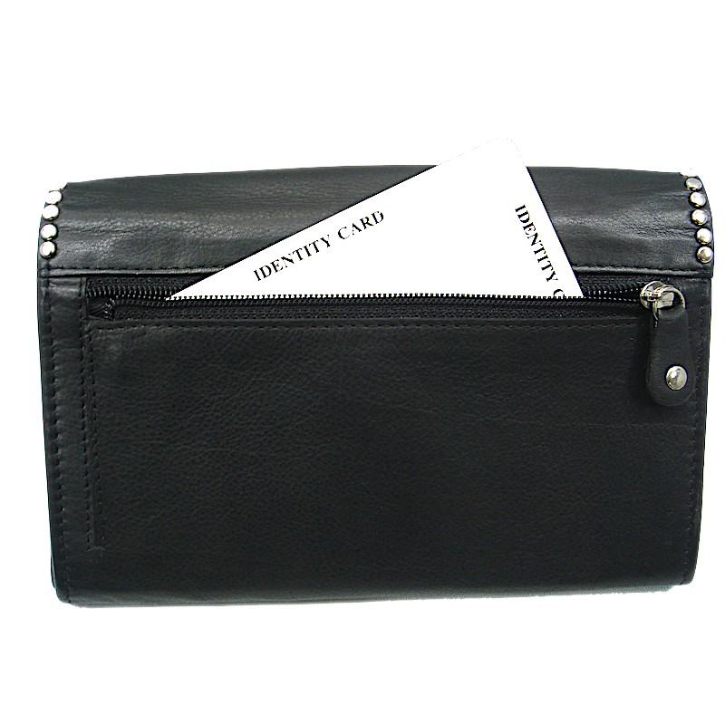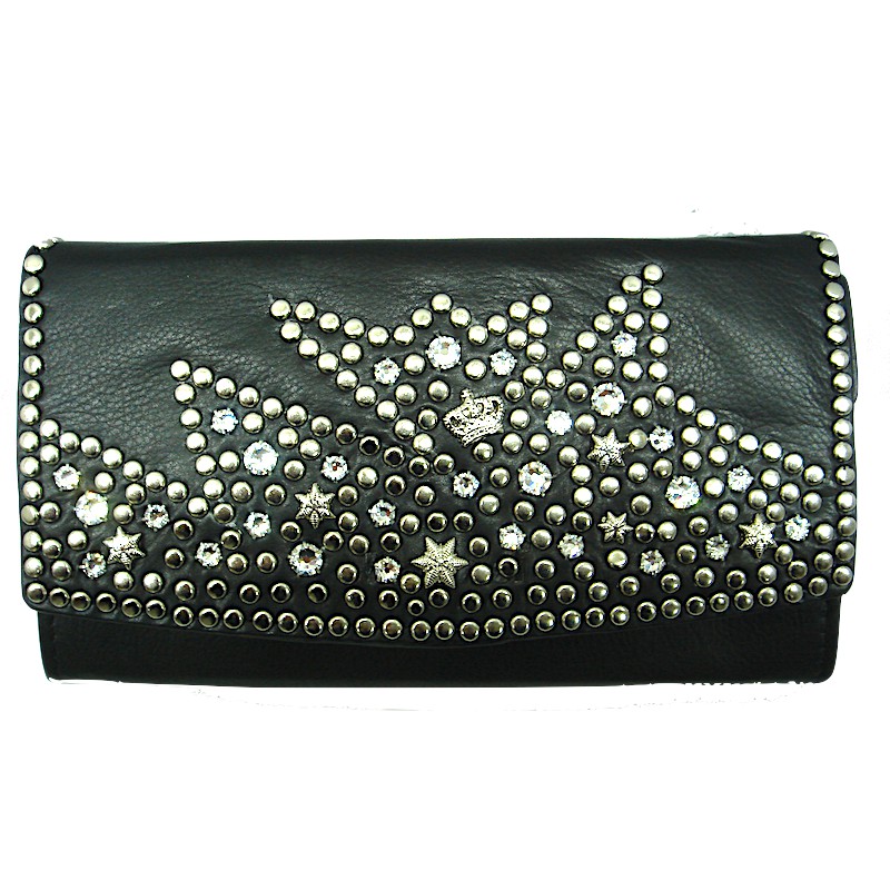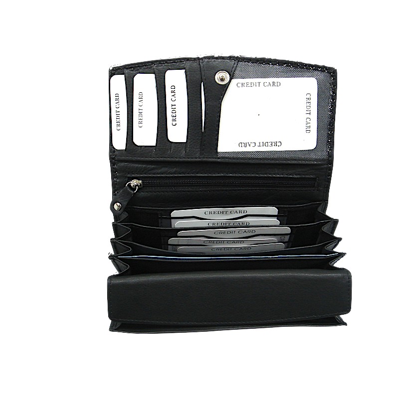 100% Echt Leder Swarovski Kristall Steine gefaßt 17x10cm 1 großes Kleingeldfach mit Druckknopf Klappe 12 Kartenfächer 1 Ausweisfach 4 Schein + 3 Steckfächer innen 1 Reißverschlussfach hinten.Diese Börse hat einen Sicherheitschutz gegen auslesen von Kreditkarten!